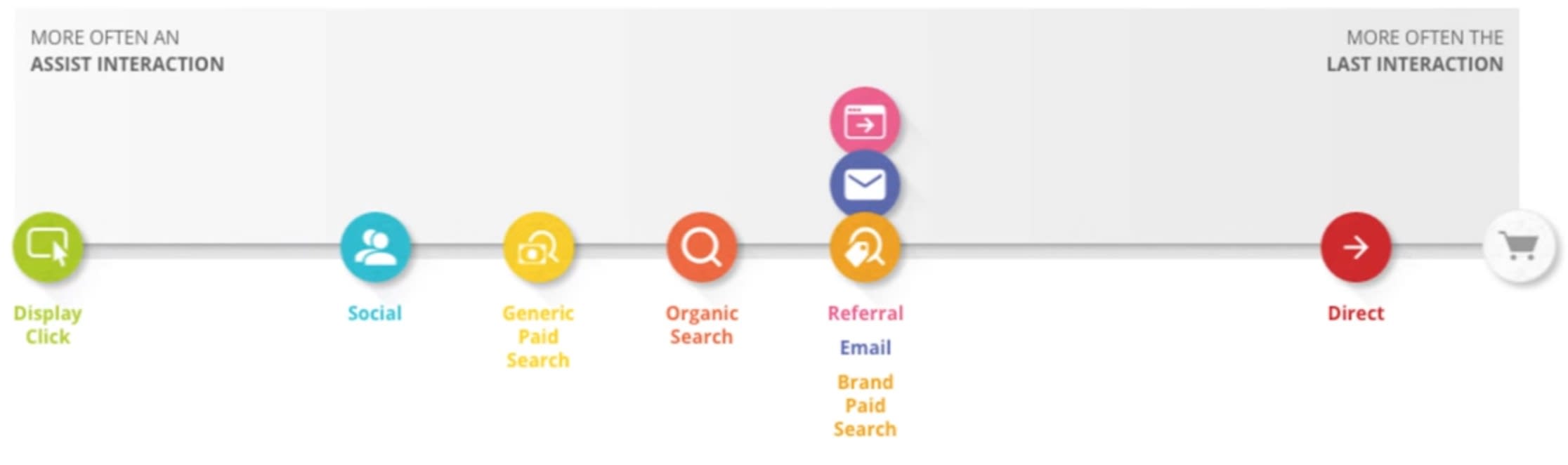 The image below may appear to be more complicated than what it is. Since Google Adwords attributes conversions based only on “tag firing” and cookie presence, and Google Analytics is based on the source of that conversion, it is important to understand how Google Analytics attributes a source.
