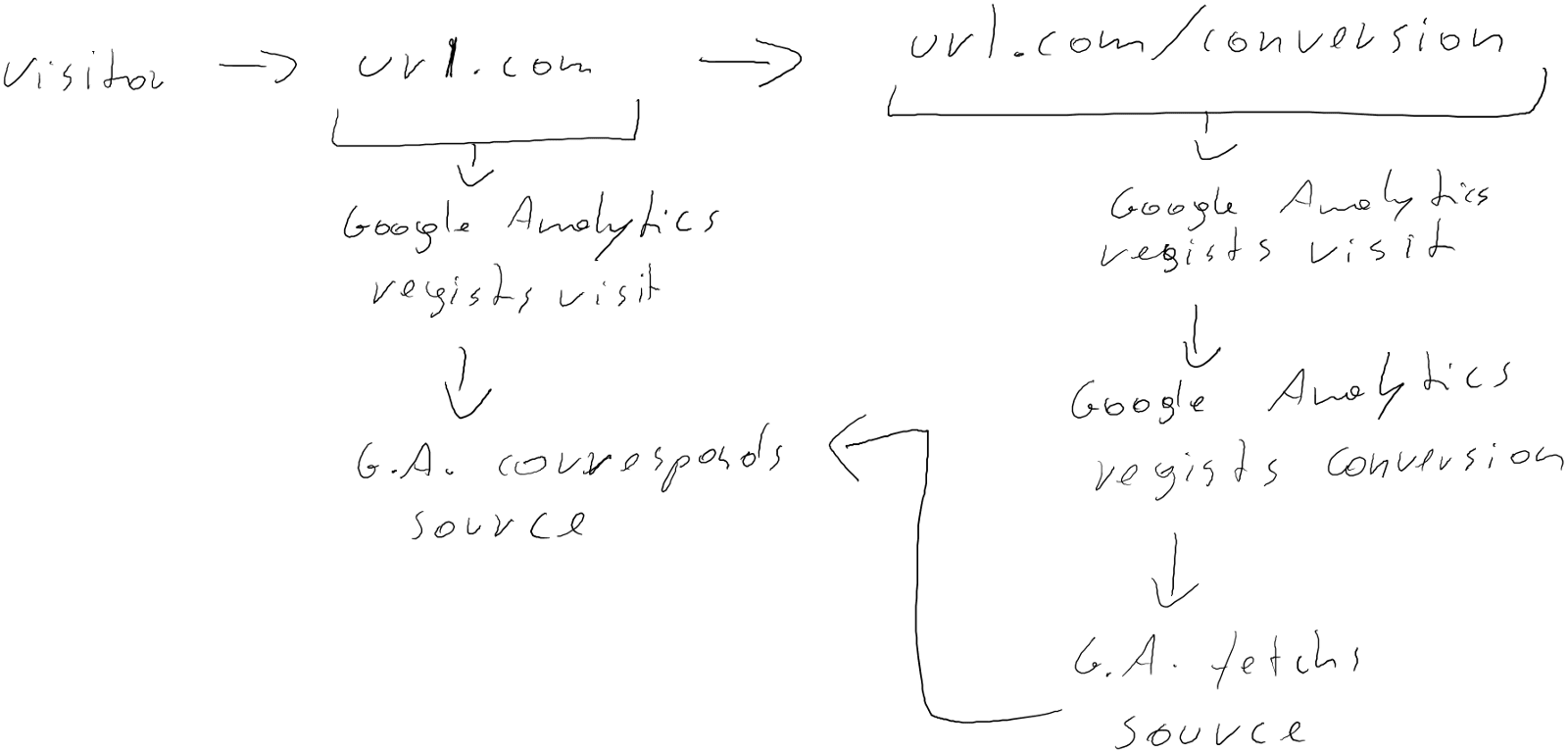 The visitor visits the website and once that visitor visits a page or triggers an event that was set as a goal, the system will identify the source and attribute that conversion to that source.